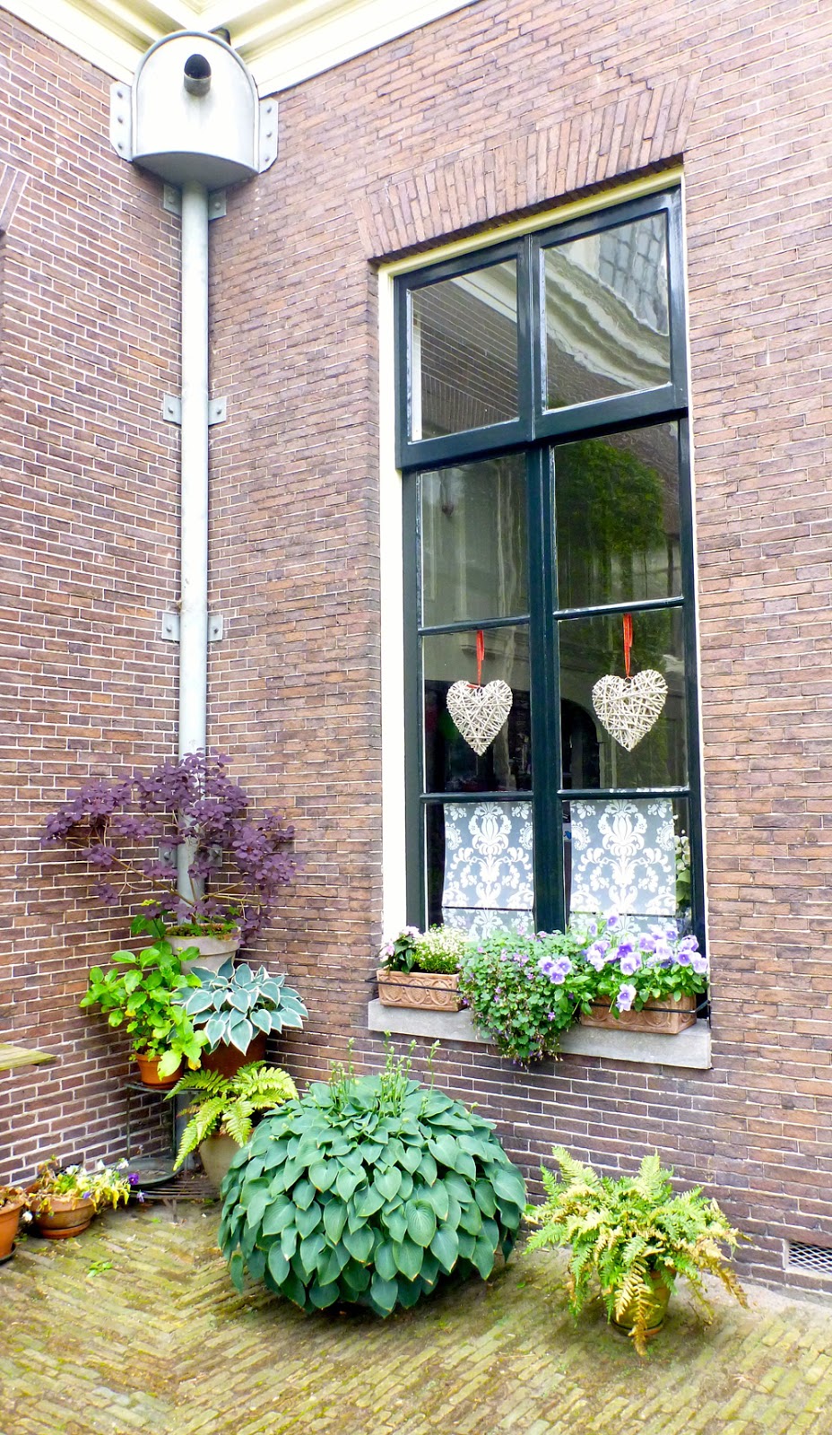 In my walk through some of the neighbourhood hofjes, I found well maintained gardens and flowers all well hidden behind a high wall and a closed garden door.